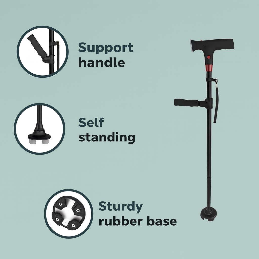 Unlike traditional canes or walking sticks, the Mobility Cane has an extra handle that provides an extra level of support, making it easier for you to stand up from chairs, couches, or any seated position independently, without the need for assistance from others.